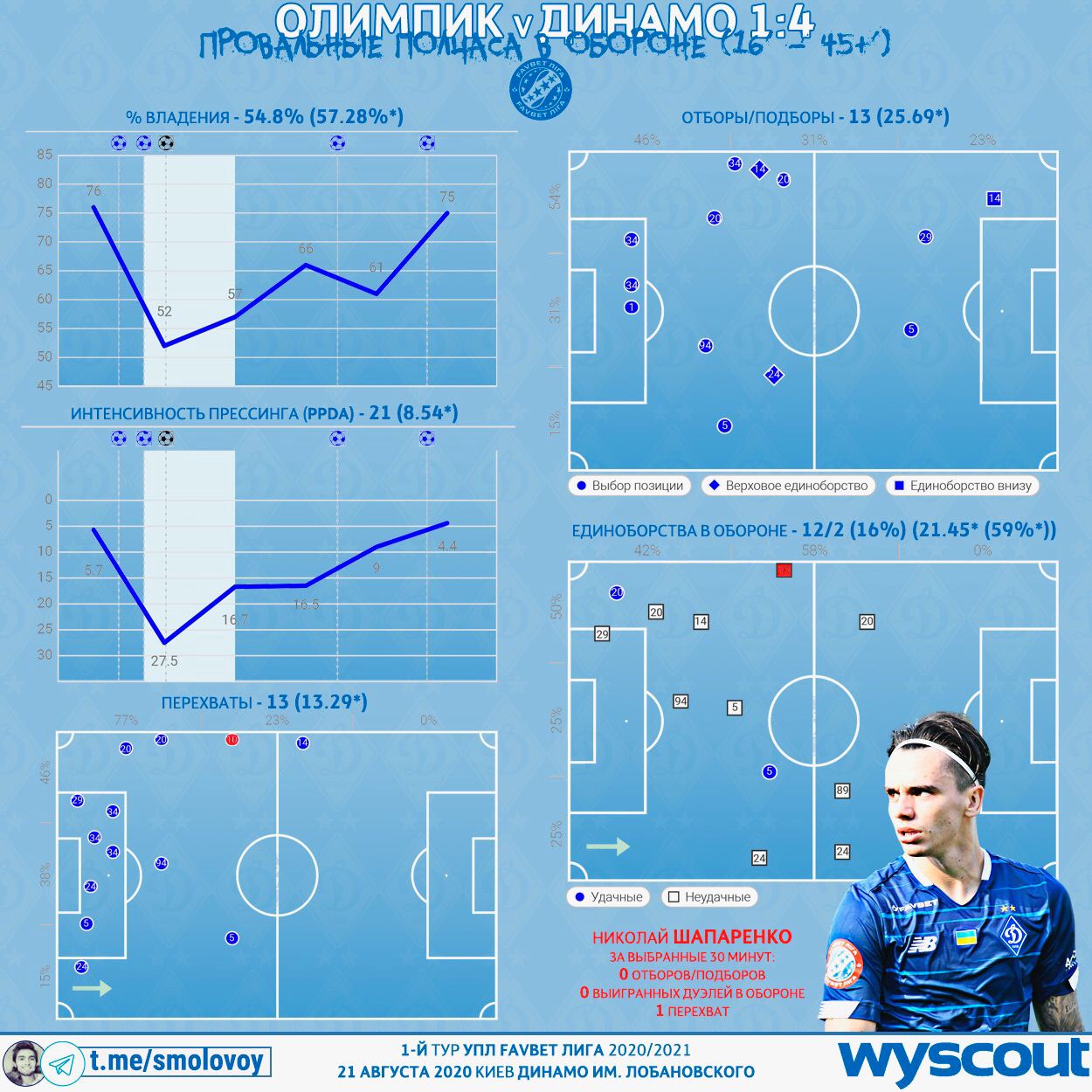 А дальше...Динамо начинает позволять Олимпику не 5 с копейками передач на 60% поля, что ближе к воротам Бущана, а 21...