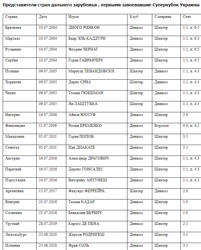 В целом же реестр обладателей почетного трофея насчитывает теперь 20 государств дальнего зарубежья. Полпреды 15 стран премьерную викторию отпраздновали с «Динамо», а еще 5 - с «Шахтером».