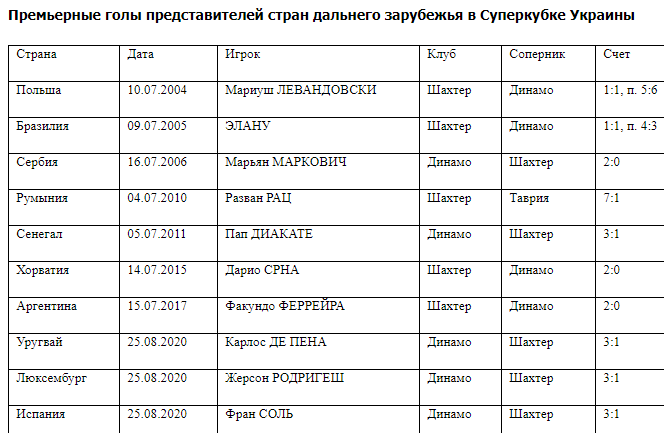 К слову, Родригес и Соль отметили победный дебют забитыми мячами. Открыл голевой счет и уругваец Карлос Де Пена. Тем самым список стран дальнего зарубежья, чьи игроки отметились взятием ворот в Суперкубке, возрос до 10.
