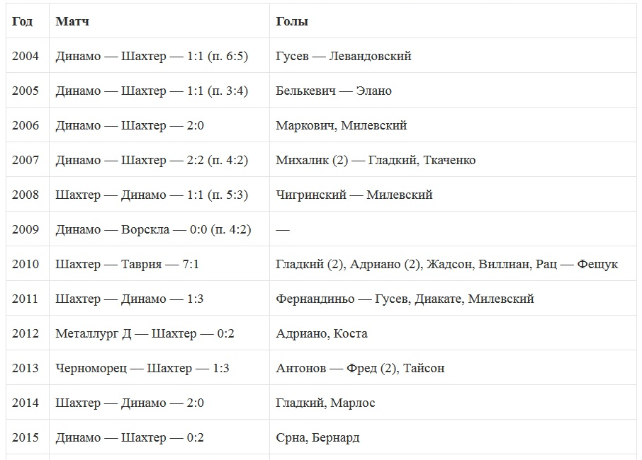 Во вторник Динамо обыграло Шахтер со счетом 3:1 и завоевало первый трофей в сезоне. За киевлян забивали Карлос де Пена, Жерсон Родригес и Фран Соль, за донетчан — Жуниор Мораес. В итоге по выигранным Суперкубкам бело-синие обошли горняков — девять против восьми, пишет zbirna.com.