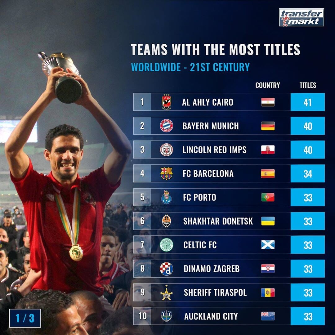 Среди лидеров «Аль-Ахли» Каир, «Бавария» и «Линкольн» Гибралтар.
