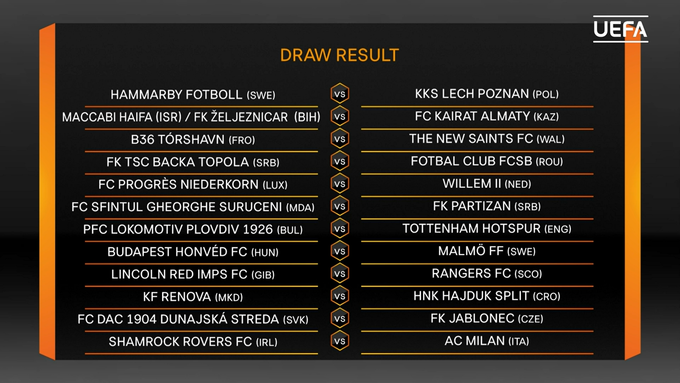 В швейцарском Ньоне состоялась жеребьевка 2-го квалификационного раунда Лиги Европы. За места в третьем отборочном раунде поспорят 92 клуба, разбитые на 46 пар.