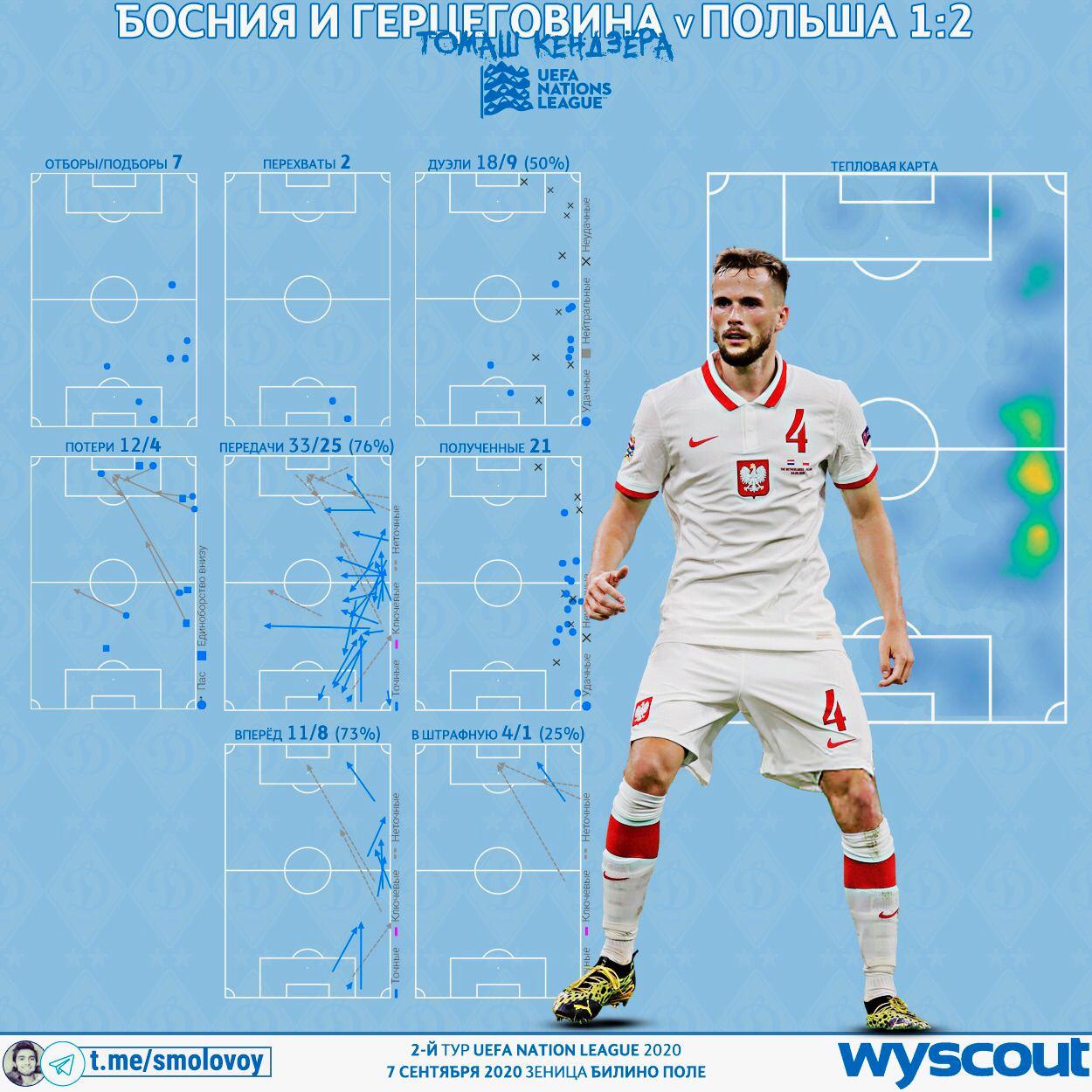 Блогер Михаил Смоловой - об игре правого защитника "Динамо" Томаша Кендзеры за сборную Польши.