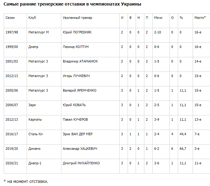 К слову, отставка Михайленко стала одной из самых ранних в истории чемпионатов Украины. В прежние годы меньше игр с начала сезона провели только 4 тренера.