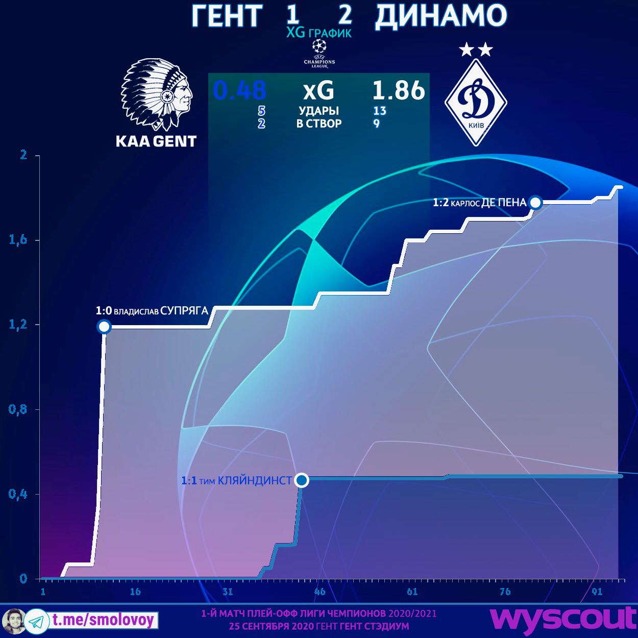 7 из 13 ударов мы нанесли из-за пределов штрафной. Красноречиво. Очень тонко характеризует качество подготовки в дублях. Гент же всего пробил по воротам лишь 5 раз на 0.48 xG.