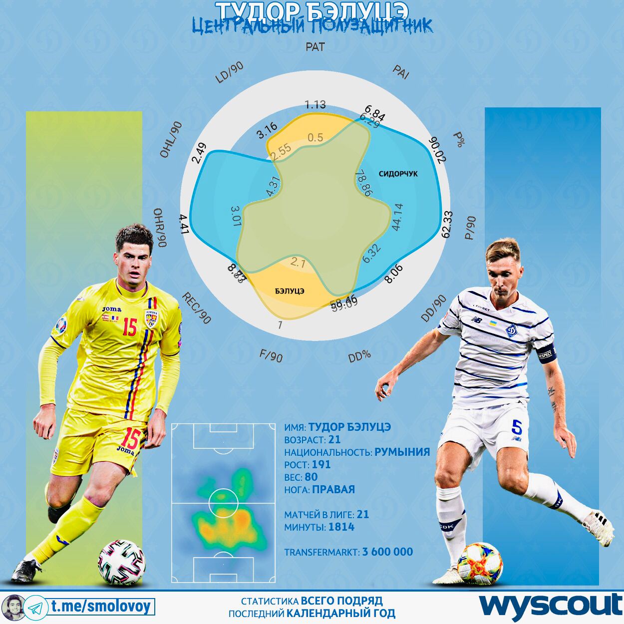 Блогер Михаил Смоловой в своем Telegram-канале разбирает игру потенциального новичка "Динамо" Тудора Бэлуцэ.