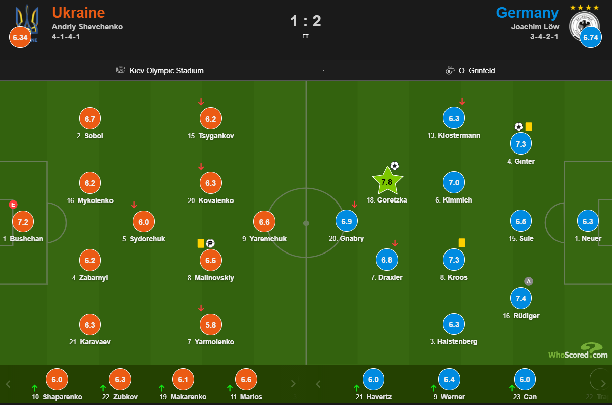 Лучшую оценку от WhoScored получил Леон Горетцка – 7,8, от SofaScore – Бущан и Горетцка – 7,9.