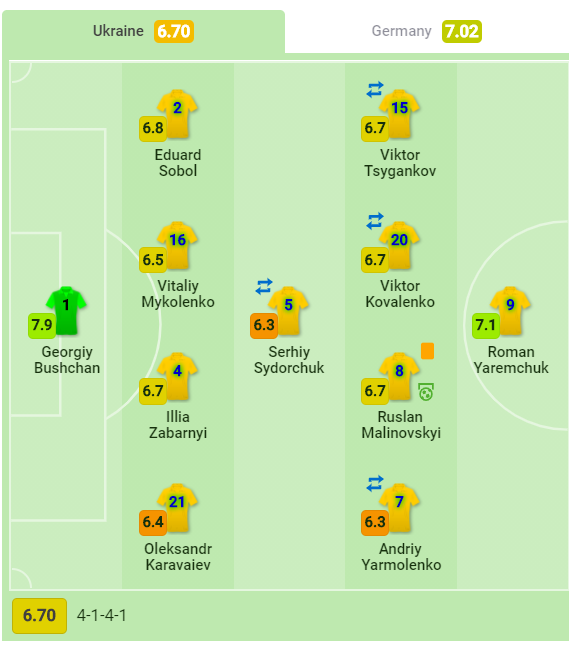 Бущан - лучший среди украинцев в матче с Германией по версии WhoScored и SofaScore