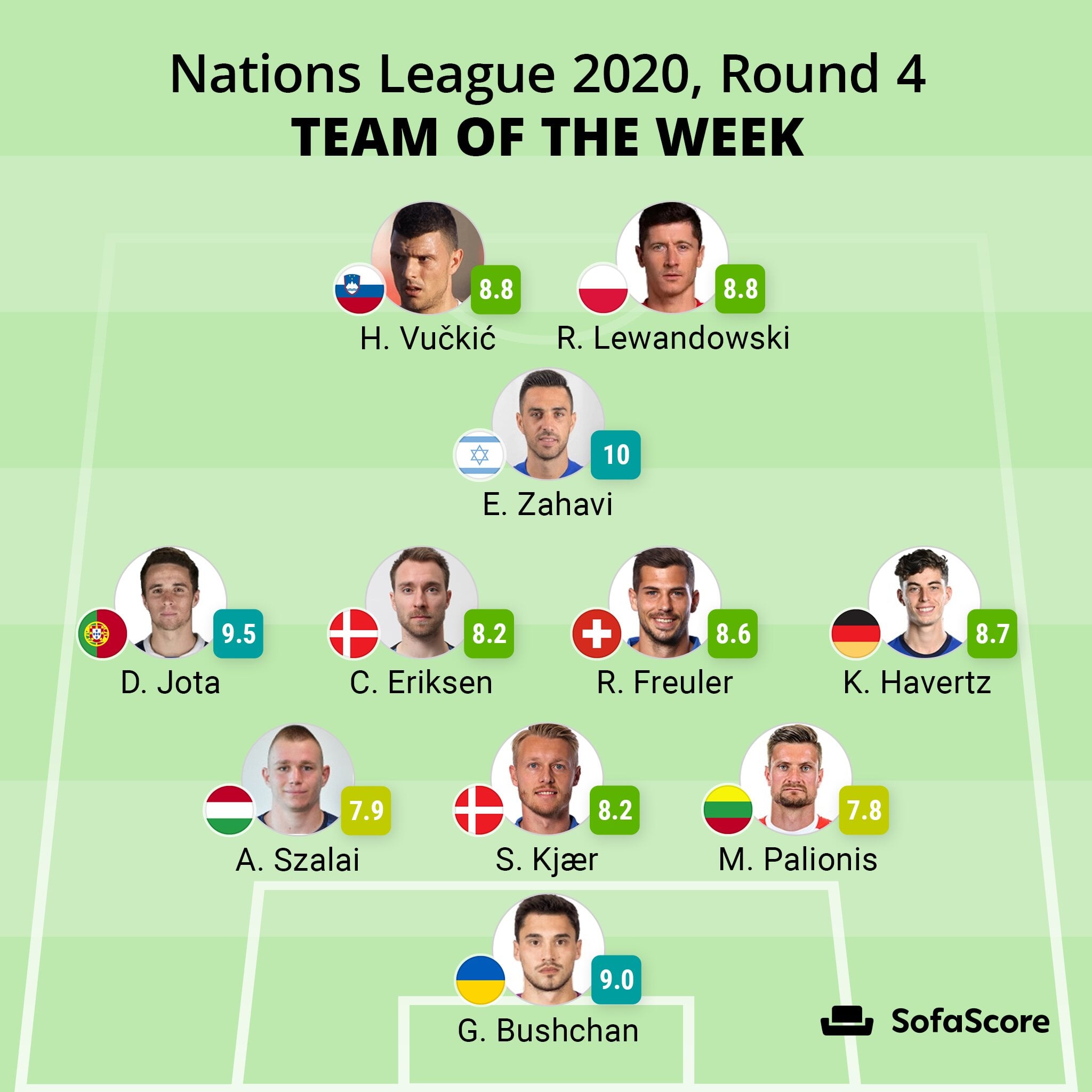 SofaScore составил символическую сборную по итогам 4-го тура Лиги наций.