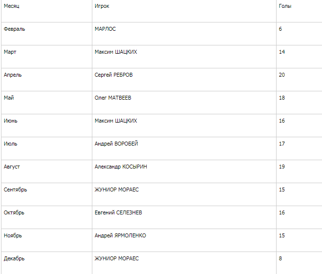 Лучшие бомбардиры УПЛ по месяцам