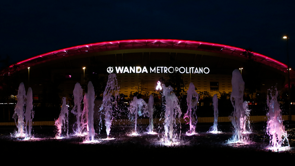 «Атлетико» присоединился к акции по борьбе с раком груди. В честь этого стадион мадридцев «Ванда Метрополитано» окрасился в розовый цвет.