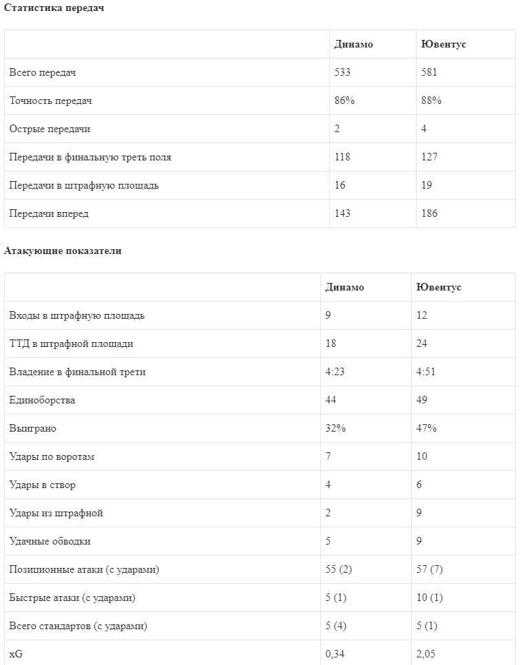 По всем раскладам это было достойное поражение, пишет zbirna.com. Футболисты Динамо не позволили особо разгуляться сопернику, но игра состоит не только из обороны. В атаке, увы, мало что получалось. По воротам соперника киевляне нанесли всего два (!) удара из пределов штрафной площади, а группа атакующих исполнителей не смогла в общей сложности выиграть и четверти единоборств. Так что этой команде еще многому нужно поучиться — и матчи с такими соперниками, как Ювентус, пойдут ей только на пользу. Компактно обороняться — это хорошо. Но проводить атаки тоже надо уметь, а не просто выбивать мяч вперед…