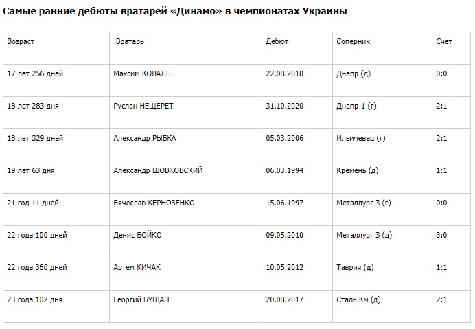 Нещерет стал самым молодым голкипером "Динамо" после Коваля