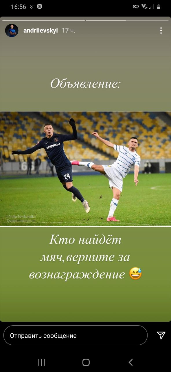 "Кто найдет мяч, верните за вознаграждение", - написал Андриевский.
