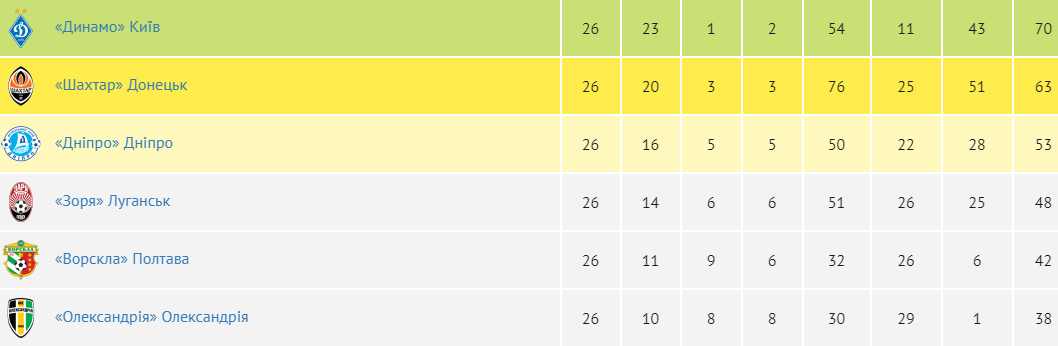 Тогда подопечные Сергея Реброва опередили на финише «Шахтер» на 7 баллов. Это и есть последний случай лидерства «Динамо» в чемпионате больше чем в одну победу. А датируется этот случай 15 мая 2016 года, когда состоялись матчи заключительного, 26-го, тура.