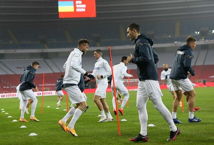 Сборная Украины провела тренировку на стадионе, где завтра встретится с Польшей
