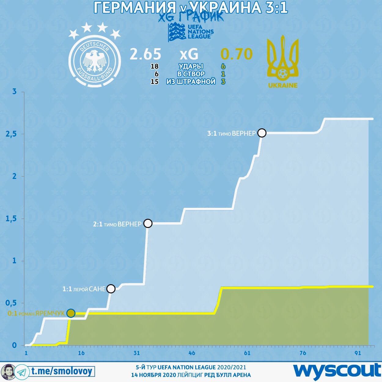 Блогер Михаил Смоловой в своем Telegram-канале разбирает игру сборной Украины с Германией.