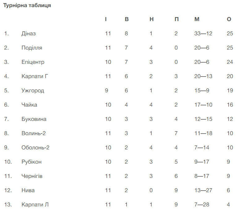 Не відставали від «Поділля» й інші команди із чільної групи. «Діназ» упевнено здолав опір «Оболоні-2» й продовжує лідирувати, а «Епіцентр» виявився сильнішим за сусідів із Вінниці.