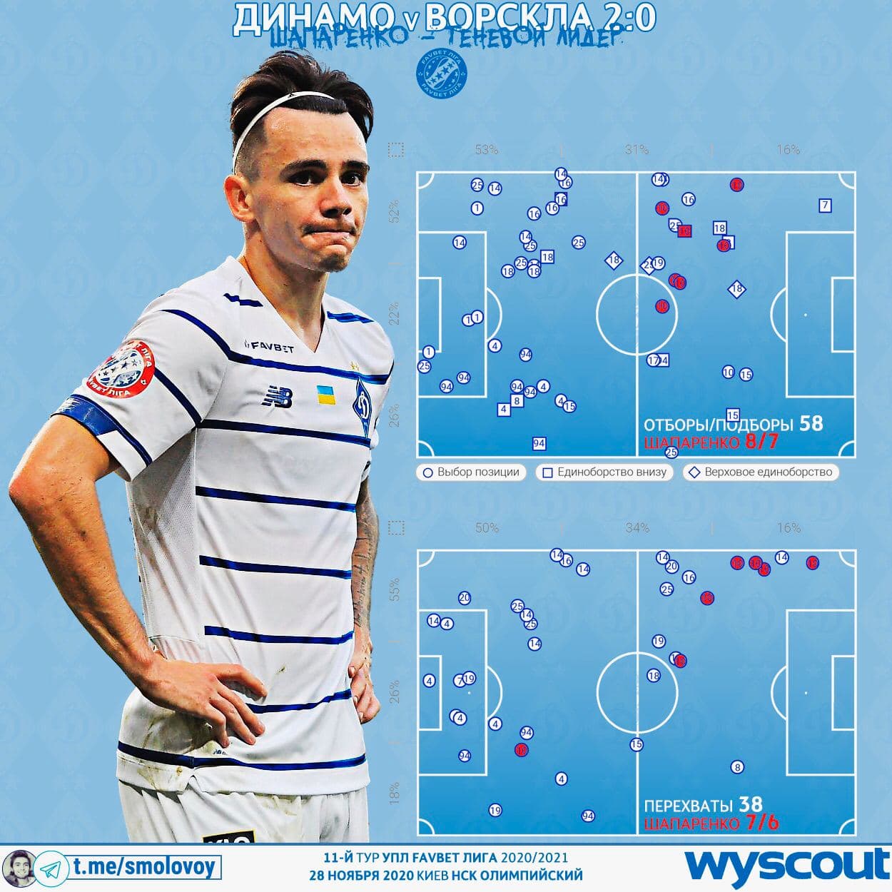 Блогер Михаил Смоловой в своем Telegram-канале разбирает игру полузащитника "Динамо" Николая Шапаренко в матче с "Ворсклой".