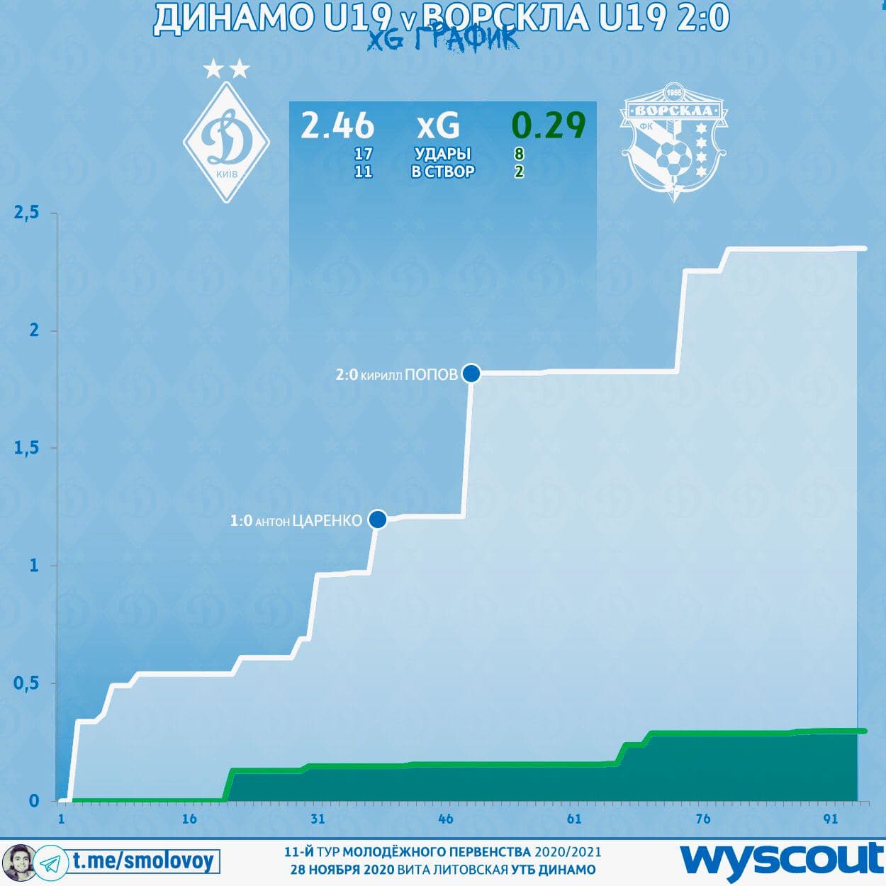 Победа получилась убедительной: 11 на 2 по ударам в створ. При том, что у Ворсклы мяч находился чаще (53.84%) и они лучше его держали (82.03% точности передач против 78.68% у нас).