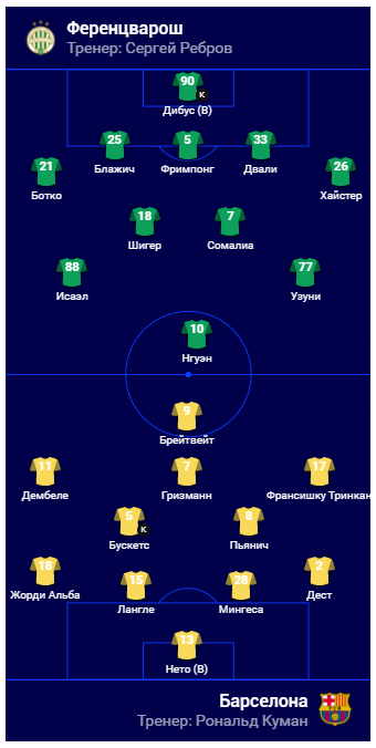 Сегодня, 2 декабря в 22:00, в матче 1-го тура Лиги чемпионов испанская «Барселона» играет на выезде против венгерского «Ференцвароша».