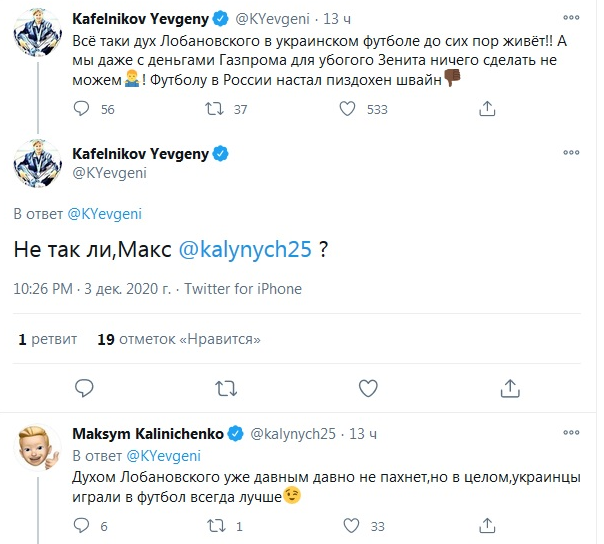 Экс-игрок сборной Украины Максим Калиниченко в твиттере ответил известному бывшему российскому теннисисту Евгению Кафельникову на его слова об украинском и российском футболе.