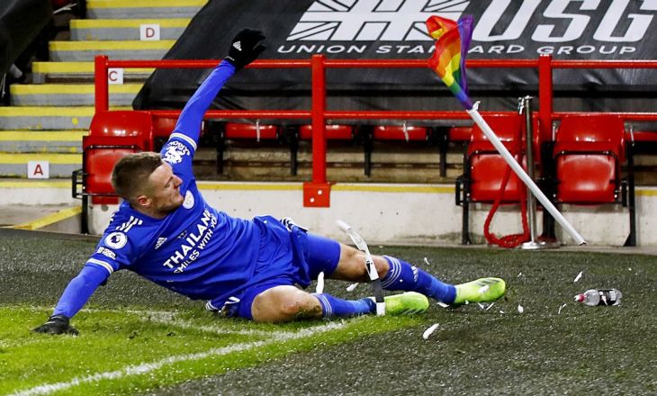 Джейми Варди в победном праздновании эффектно сломал угловой флажок.