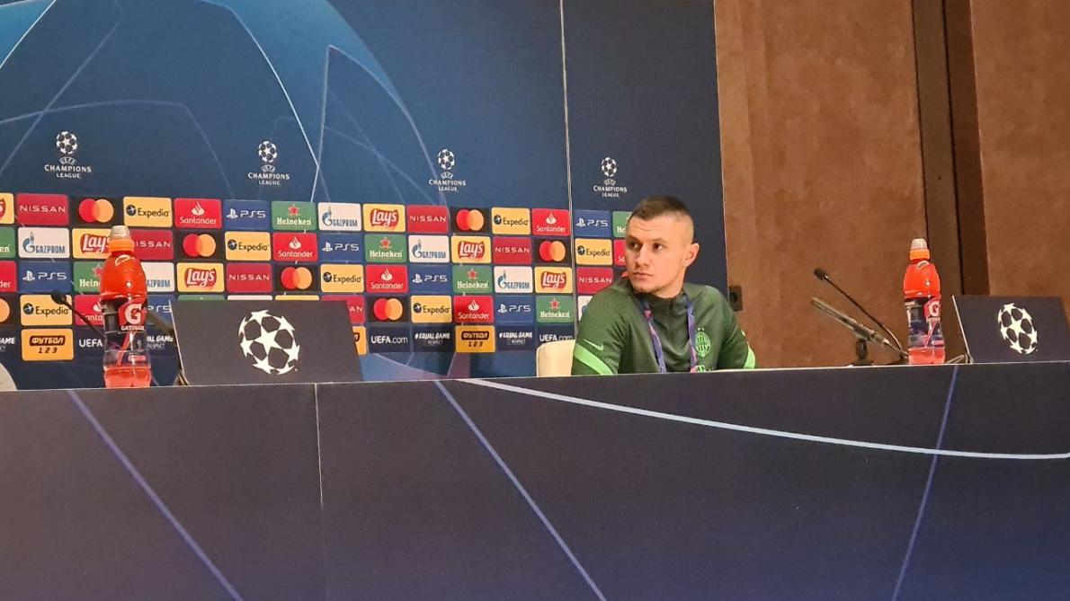 Пресс-конференция игрока "Ференцвароша" Александра Зубкова перед игрой 6-го тура Лиги чемпионов с "Динамо".