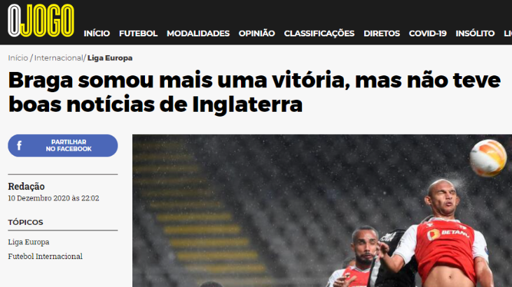 "Брага" добывает ещё одну победу, но хороших новостей из Англии не дождалась", - с таким заголовком выходит отчёт о матче на сайте O Jogo. В ряде материалов на тему победы "Браги" журналисты издания делают акцент на финансовом вопросе.