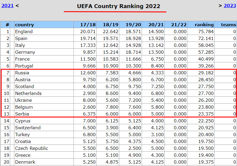 В принципе, ничего критичного. Скоты набрали рейтинг за счёт меньшего количества команд в еврокубках. Подели наш рейтинг на 4 и будет неплохой показатель.