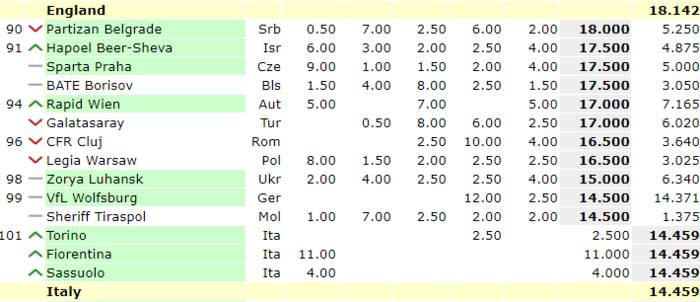 Стоит также отметить, что Заря, благодаря двум победам на групповом этапе Лиги Европы поднялись на 98-е место.