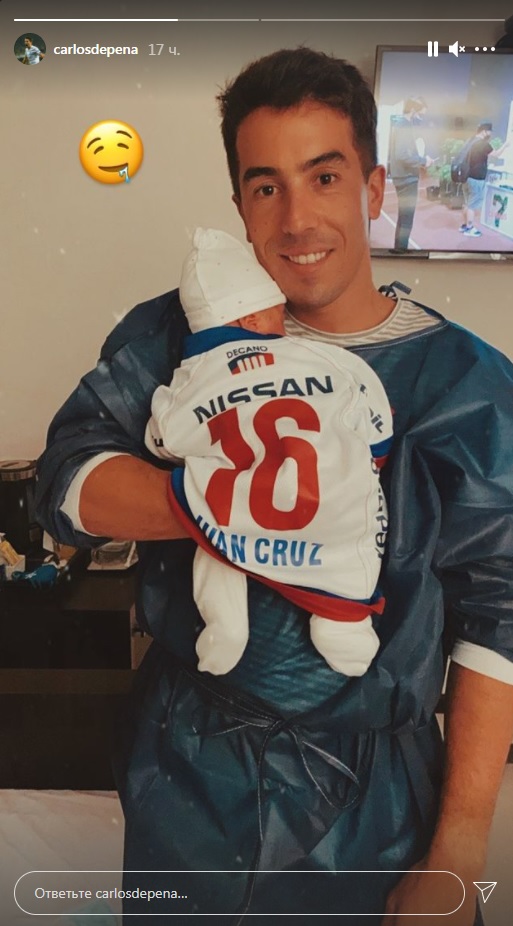 На своей странице в Инстаграме радостный отец поделился фотографией малыша, который уже получил в подарок именную футболку бывшего клуба Карлоса «Насьоналя».