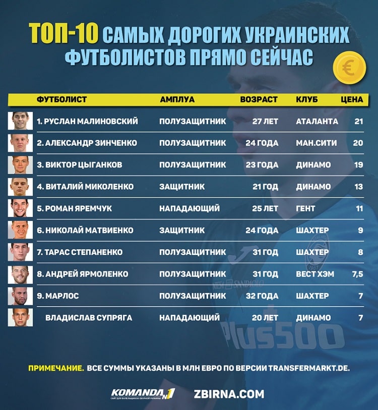 Малиновский, Миколенко, Супряга и еще семь самых дорогих украинских футболистов в 2020 году