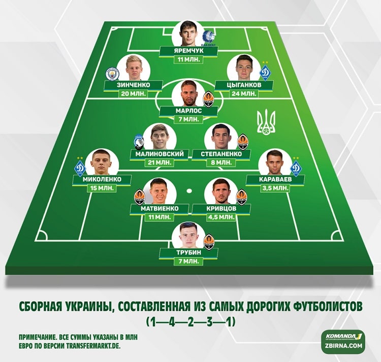 Zbirna.com решила вооружиться новыми данными от transfermarkt.de и определить виртуальный стартовый состав сборной Украины из самых дорогих исполнителей.