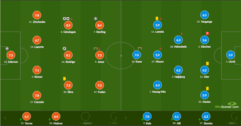 Он получил оценку 7,8 от Whoscored, это 4-й результат в команде наравне с Канселу. У него выше балл, чем у любого из игроков «Тоттенхэма».