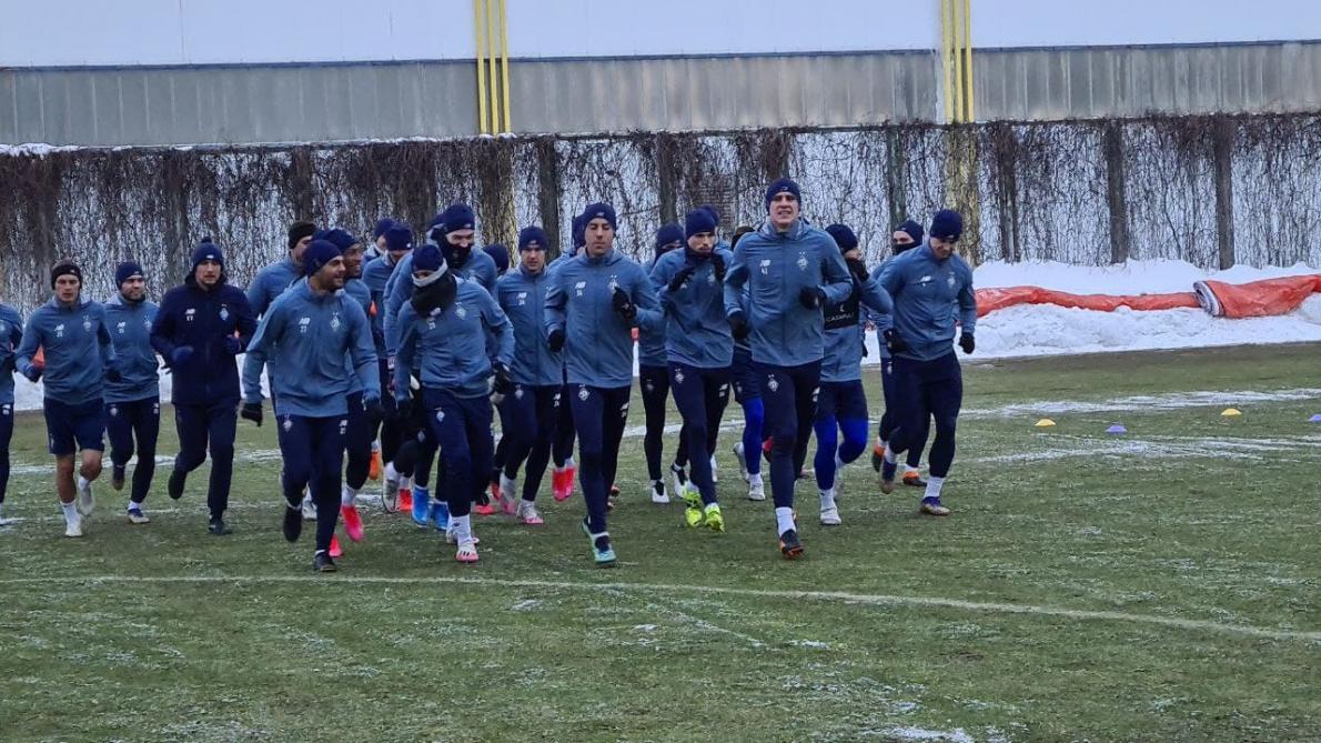 Динамовцы на пробежке на тренировке перед "Брюгге"