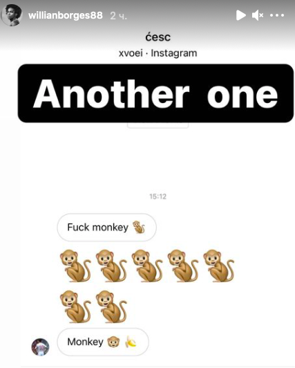Еще один человек прислал Виллиану эмодзи обезьяны и банана. Сам футболист в сторис написал: «Что-то нужно изменить. Борьба с расизмом продолжается».