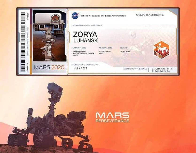 NASA еще в 2019 году объявило о возможности отправить имя любого желающего на Марс вместе с марсоходом Perseverance. Члены ультрас луганской Зари воспользовались такой возможностью и отправили имя клуба.