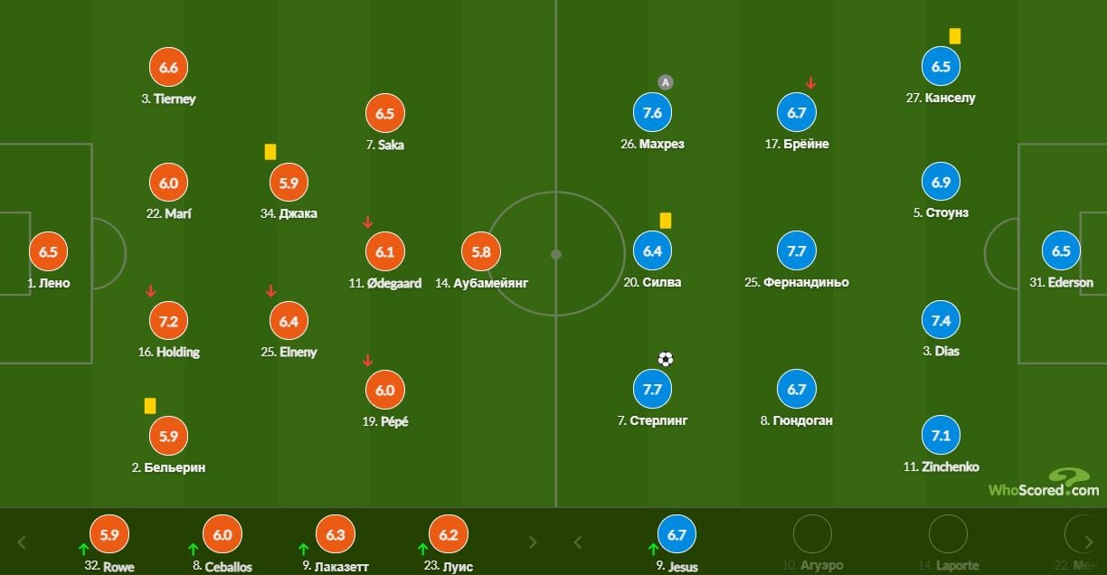 WhoScored оценил его действия в 7,1 балл – четвертая лучшая оценка в команде. Выше у Стерлинга, Фернандиньо (по 7,7), Мареза (7,6) и Диаша (7,4).