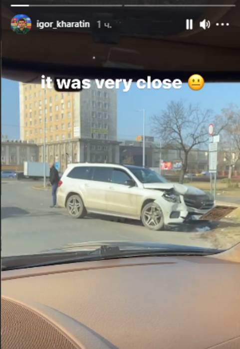 Футболист записал в Instagram сторис в места аварии. Как рассказал Харатин, перед ним в жуткую аварию попали три авто.