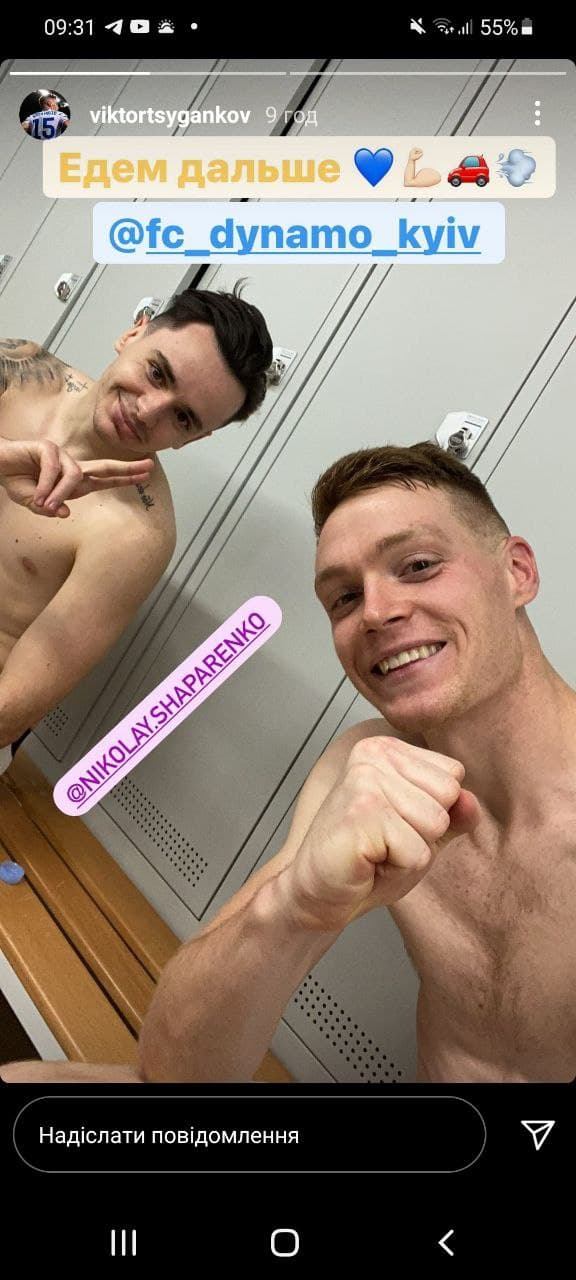 Хавбек "Динамо" Виктор Цыганков в своем Instagram поделился совместным фото с Николаем Шапаренко из раздевалки после победы над "Брюгге".