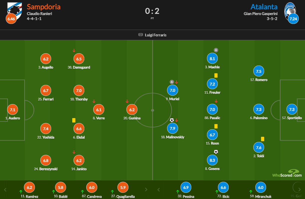 WhoScored и SofaScore оценили игроков матча 24-го тура чемпионата Италии «Сампдория» – «Аталанта» (0:2).