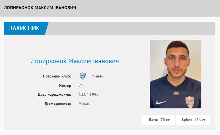 Третьим новичком команды после Сиака Багайоко и Виталия Бойко стал 25-летний украинский защитник Максим Лопыренок, который уже выступал за «Минай» на правах аренды в первой половине сезона.