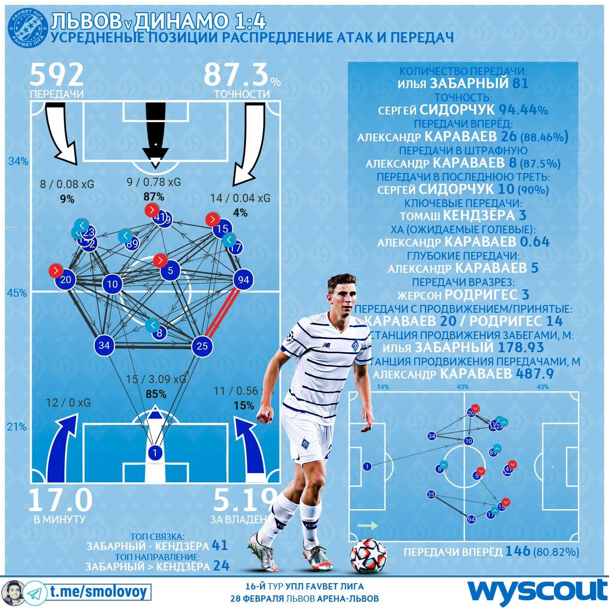 Динамо получило возможность ГОТОВИТЬ передачи вперёд и продвижение. Без помех в виде блока, как с Брюгге, киевляне вернулись к осеннему плейбуку: 13.63 PPDA Львова показатель посредственней.