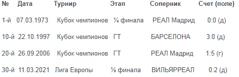 - 30-й еврокубковый матч «Динамо» с представителями Испании. Баланс всех игр: 5 побед, 10 ничьих и 15 поражений, мячи 33-51.