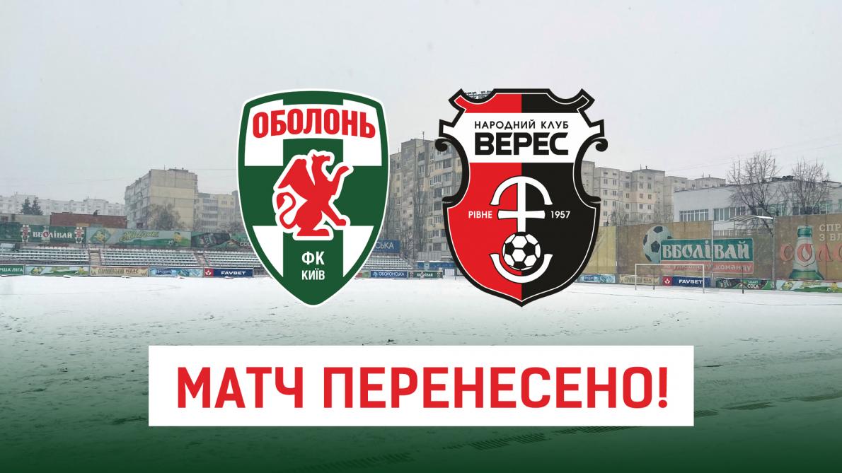 Матч ФК “Оболонь” – НК “Верес” було перенесено у зв‘язку з несприятливими погодними умовами.