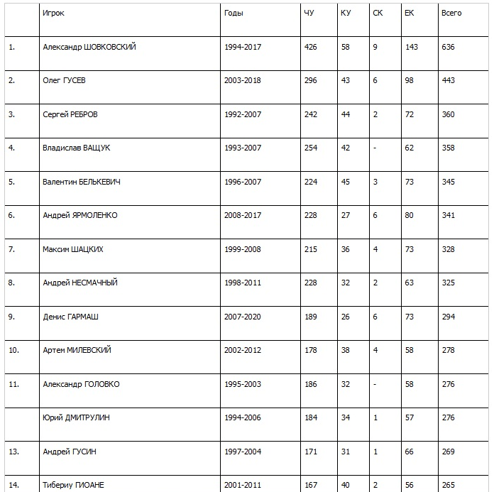 Игроки, проведшие 250 матчей за «Динамо» за годы независимости (1992-2021)