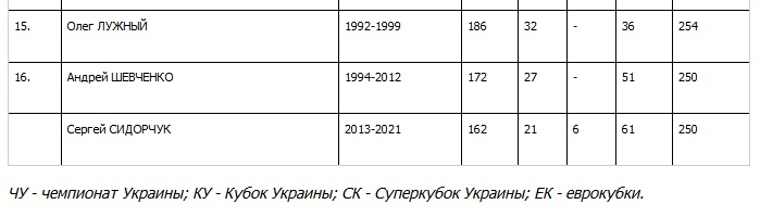 Матч с «Зарей» (2:0) стал для Сергея Сидорчука 250-м официальным поединком в карьере в динамовских рядах и теперь он делит 16-ю строчку с Андреем Шевченко в гвардейской табели о рангах киевлян за годы независимости.