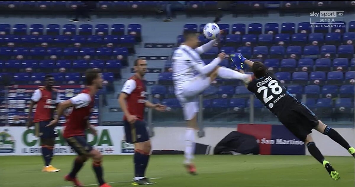 Португалец на 14-й минуте высоко поднял ногу в попытке дотянуться до мяча и попал шипами в подбородок вратарю Алессио Краньо, у которого пошла кровь. Судья Джанпаоло Кальварезе показал Роналду желтую карточку за опасную игру.