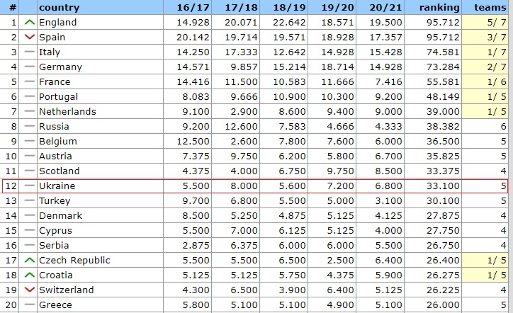 С точки зрения таблицы коэффициентов, в которую так любят заглядывать многие наши болельщики, сезон вышел средненький. Явно лучше позапрошлого или сезона-2016/17, но хуже многих других. По коэффициенту в этом сезоне Украина намного опередила Россию, опередила Бельгию, Австрию, которые в данной таблице располагаются выше.